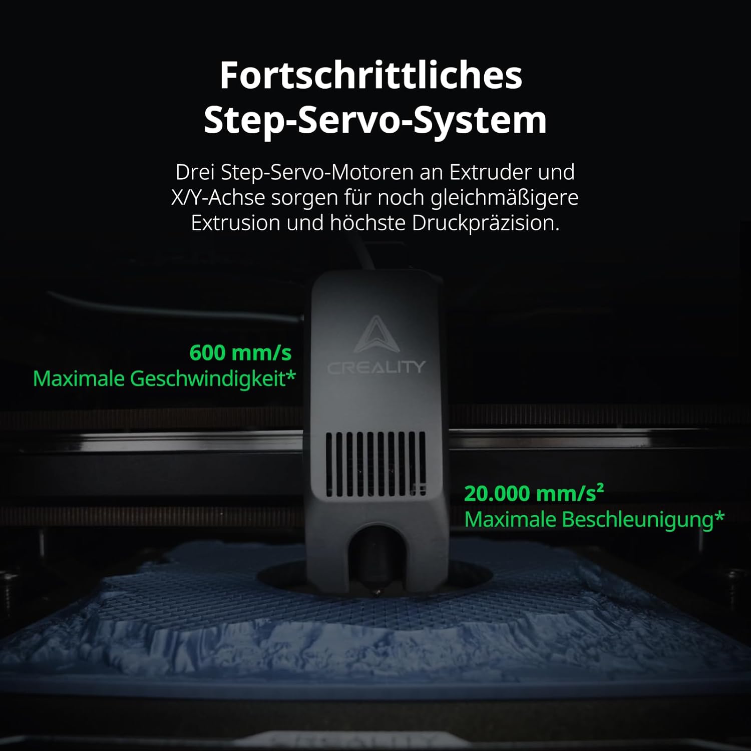 - Überragende Druckqualität: Robuster Rahmen und präzises Schritt-Servomotor-System. Der K2 verwendet drei Schritt-Servomotoren – sowohl im Extruder als auch auf der X-/Y-Achse. Diese können das Drehmoment in weniger als einer Millisekunde dynamisch