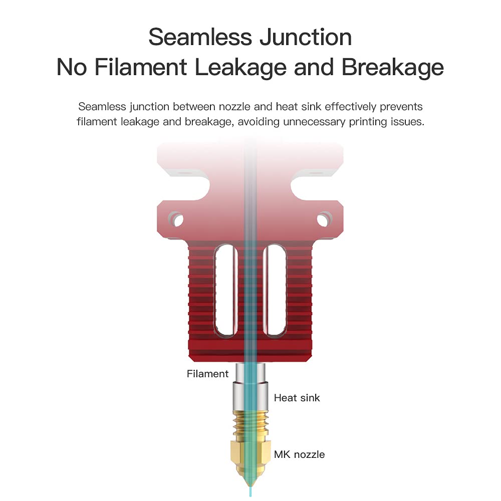 - Effizientere Heizung und Wärmeableitung: Fortschrittlicher Thermistor & Heizrohr, schnelle Erwärmung. Der Kühlkörper nimmt eine hohle Struktur an, die die Wärmeableitung effizienter macht. Düse mit einem leistungsstarken, leisen Lüfter kann die