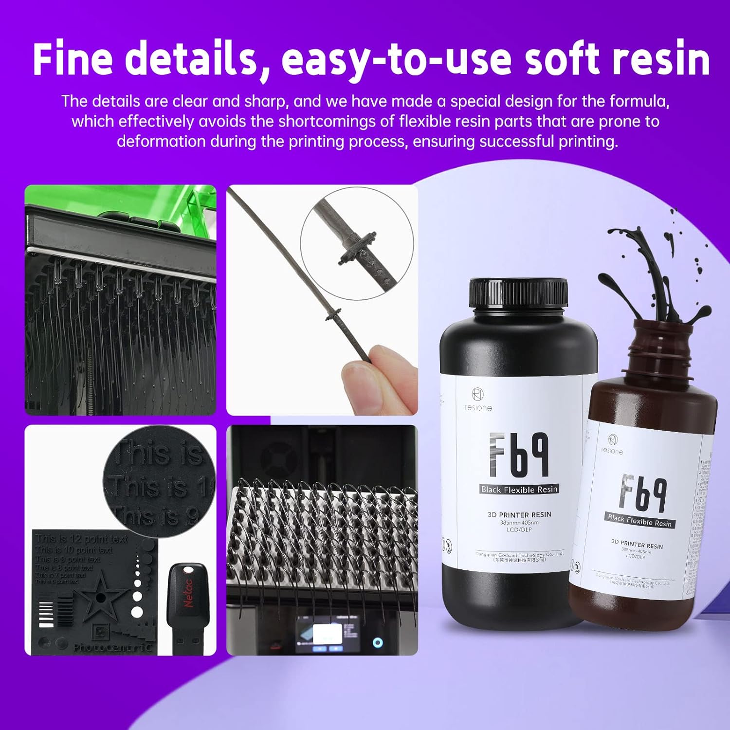 - [Feine Details, einfach zu verwendendes weiches Harz] Die Details der F69-Drucke sind sehr scharf und klar. Das Trennmittel wird seiner Formel hinzugefügt, sodass die aushärtende Schicht nach jeder Belichtung weniger Haftkraft hat, wenn sie den