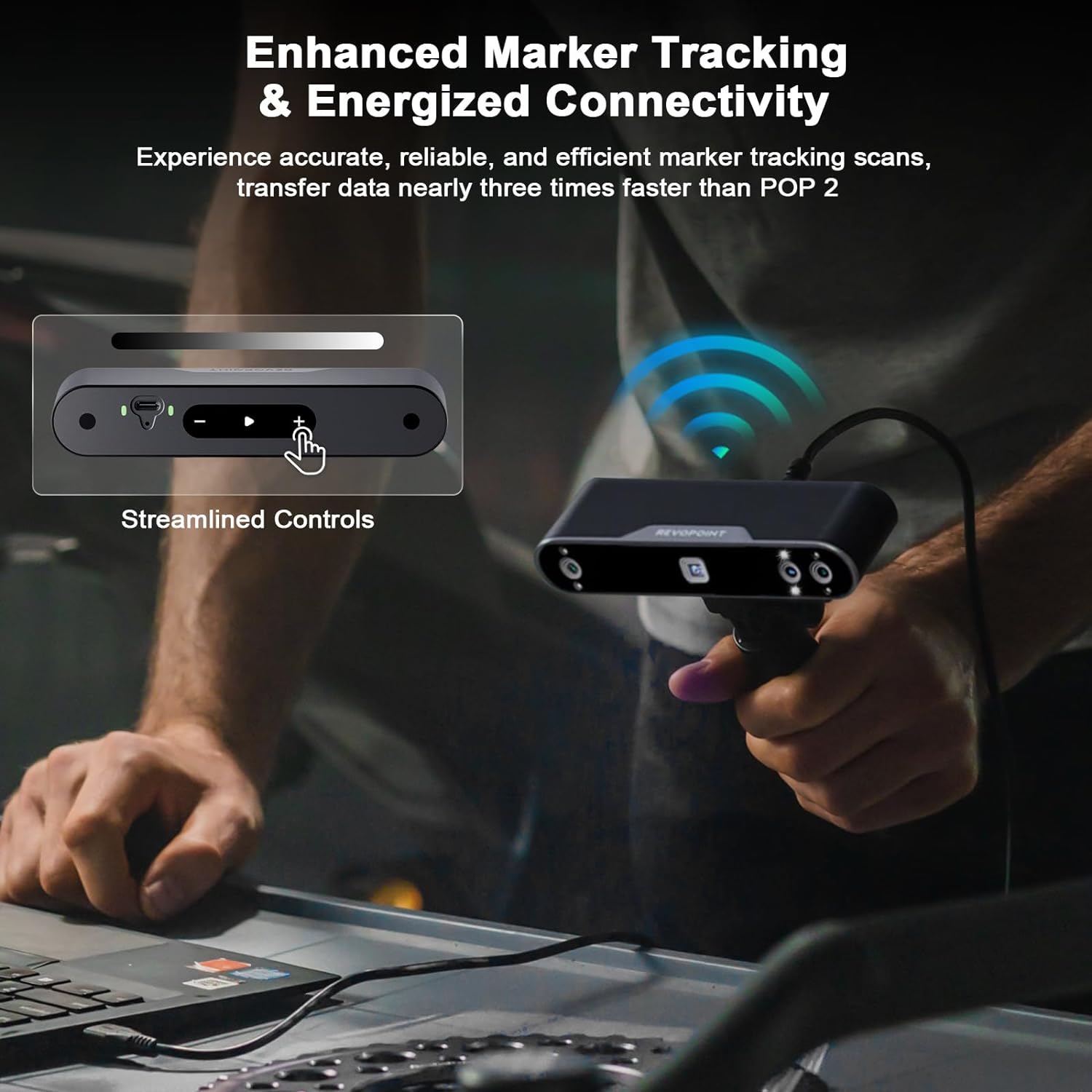- Revopoint POP 3 3D-Scanner: POP 3 ist der 3D-Scanner der nächsten Generation aus der POP-Serie mit neuer und verbesserter Hardware, Design und Benutzerfreundlichkeit. Die Verbesserungen der Fähigkeiten von POP 3 machen die Erfassung von 3D-Scans für