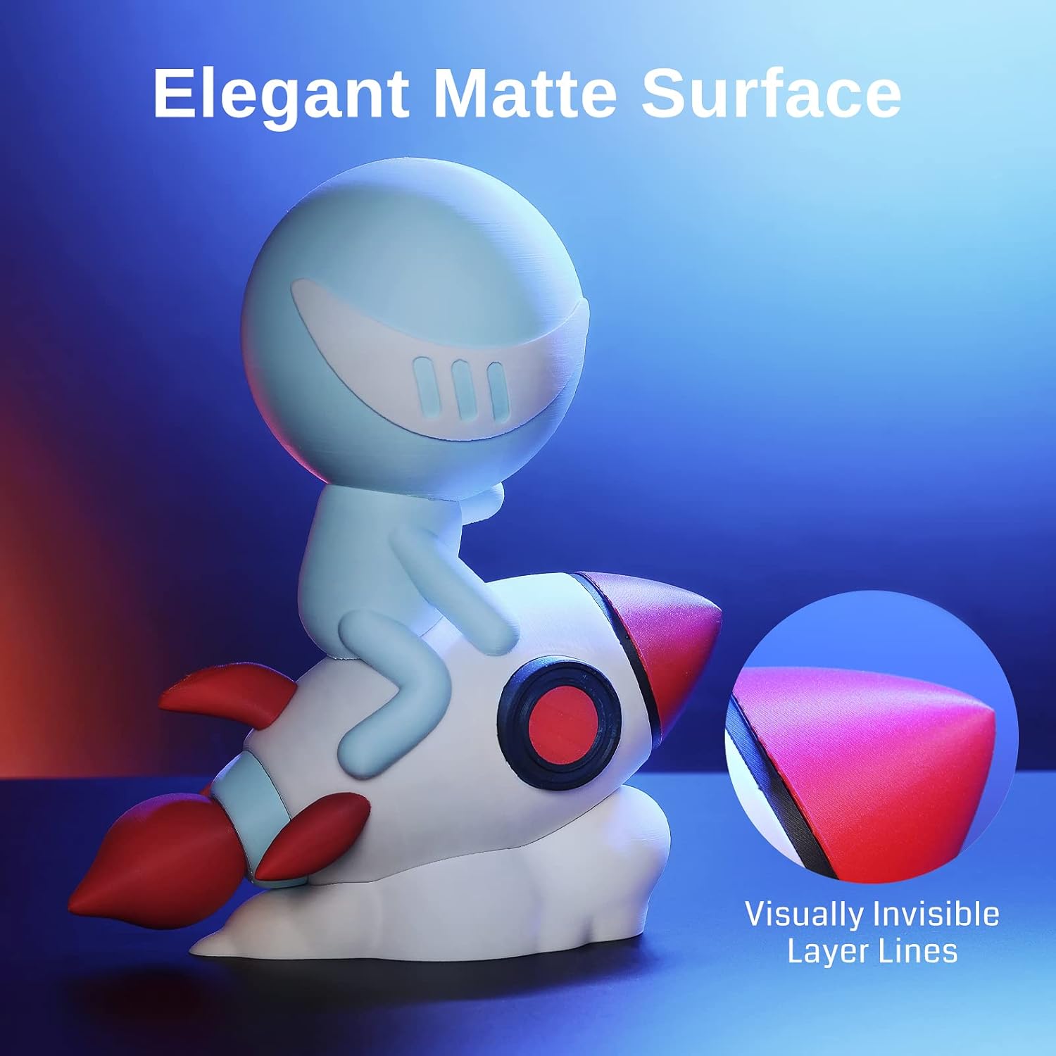 - Matte Oberfläche und langlebig: Das Modell, das aus diesem Material hergestellt wurde, wird eine matte Oberfläche haben, die die Schichtlinien dem Blickfeld entziehen hilft. Es ist auch stabiler als Modelle, die mit regulärem PLA gedruckt wurden.