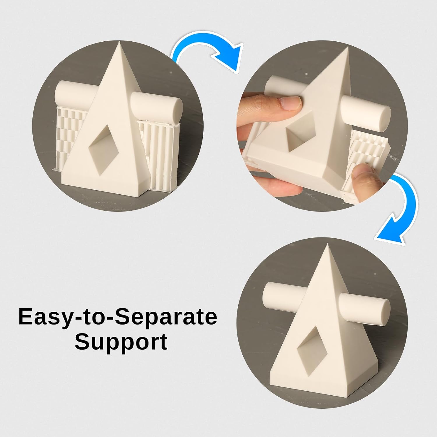- Leicht zu entfernende Stützstrukturen: Das Entfernen von Stützstrukturen ist bei Verwendung dieses Filaments ein schneller und einfacher Prozess. Sie können ohne Beschädigung des Modells darunter abgenommen werden, wobei alle feinen Details erhalten