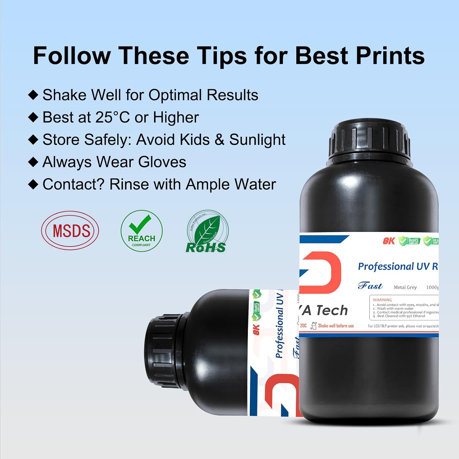 - 【Hohe Präzision und tolle Details】Siraya Tech 3D-Druckharz ist die Wahl vieler professioneller Modellliebhaber. Metallgrau ist ein dunkleres Grau, das seine visuelle Auflösung für atemberaubende Farbeffekte und mehr Details erhöht. Es ist eine