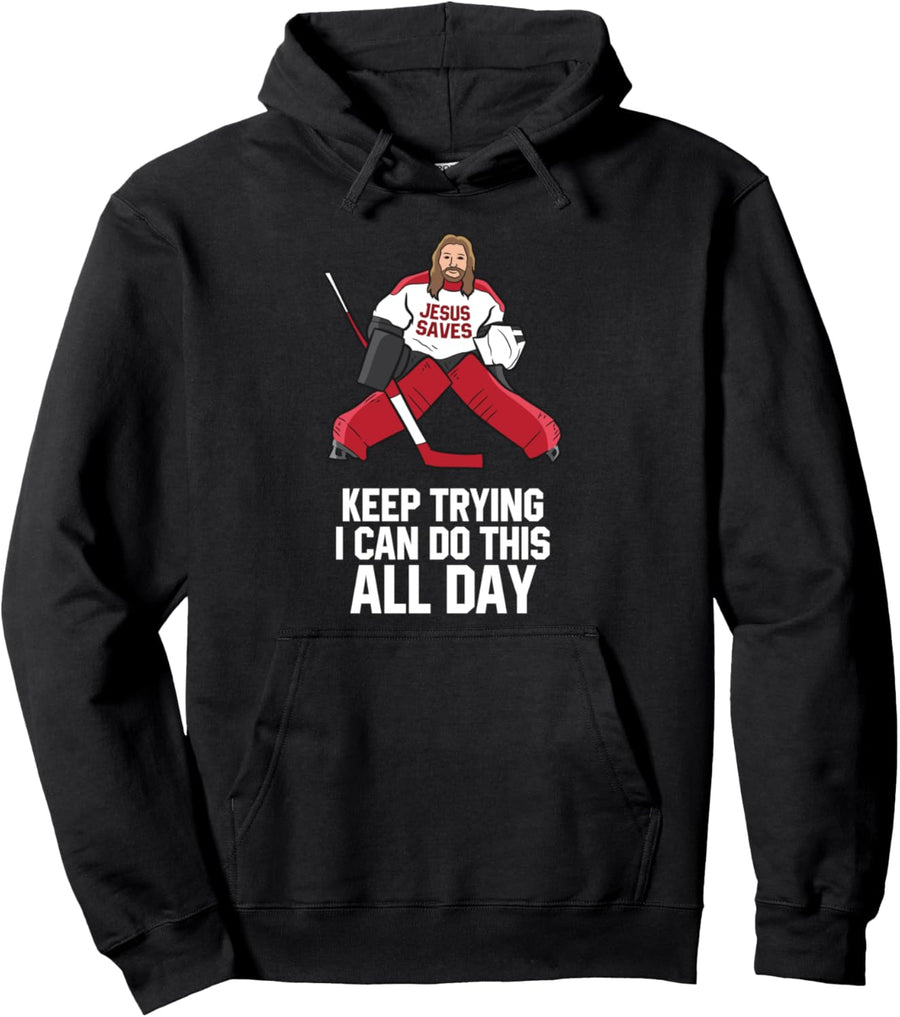 "Keep Trying I Can Do This All Day Jesus Saves Hockey-Torwart Pullover Hoodie