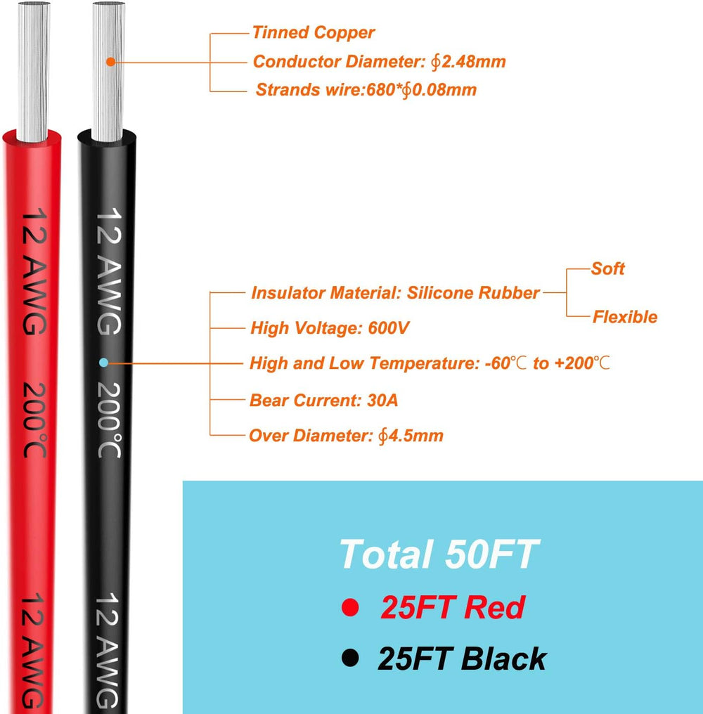 3.3mm² 12AWG Silikon Elektrischer Draht Hook-up Kabel Insgesamt 20 Meter [10 Meter schwarz und 10 Me