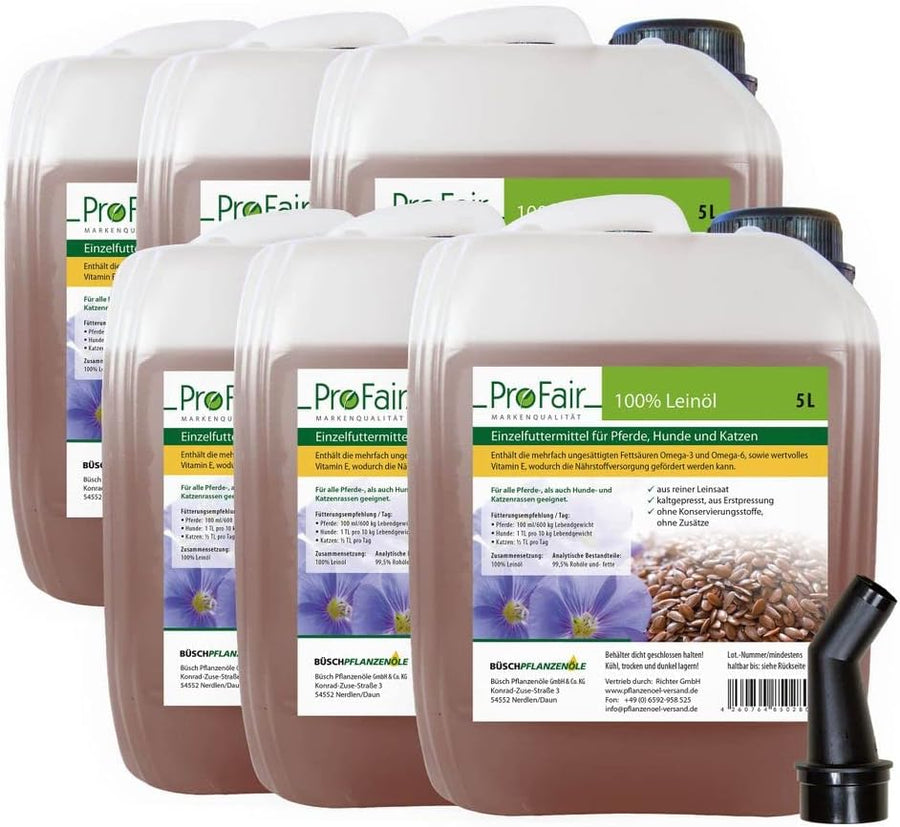 30 Liter ProFair Leinöl (6 x 5 Liter Kanister) kaltgepresst, 100% aus Reiner Leinsaat, ohne Zusätze,