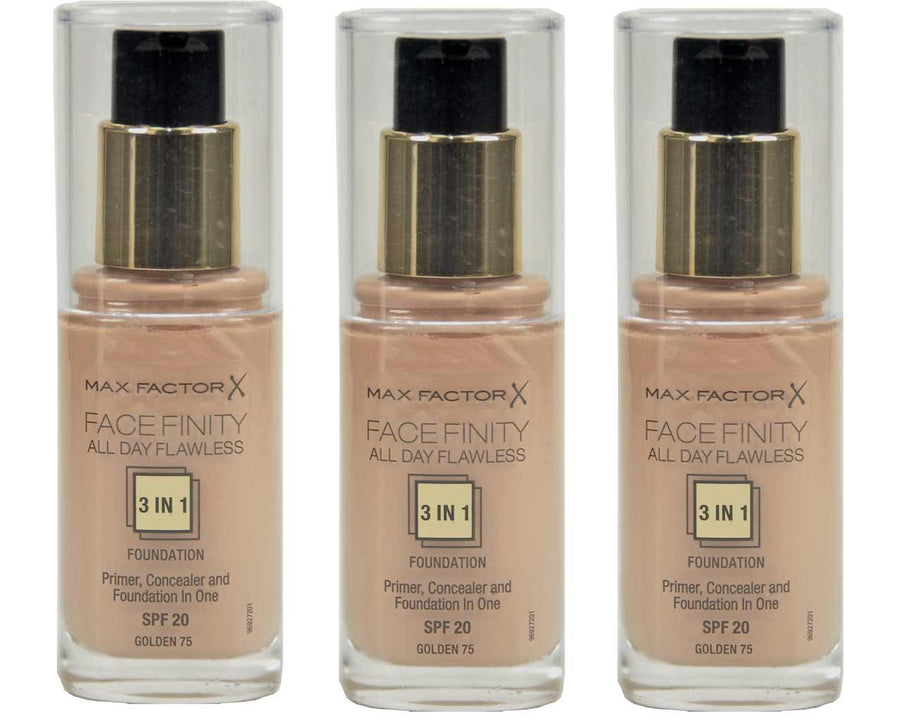 3 x Max Factor Facefinity All Day Flawless 3in1 Foundation - Golden 75 30ml 30 ml (3er Pack) gold, 3