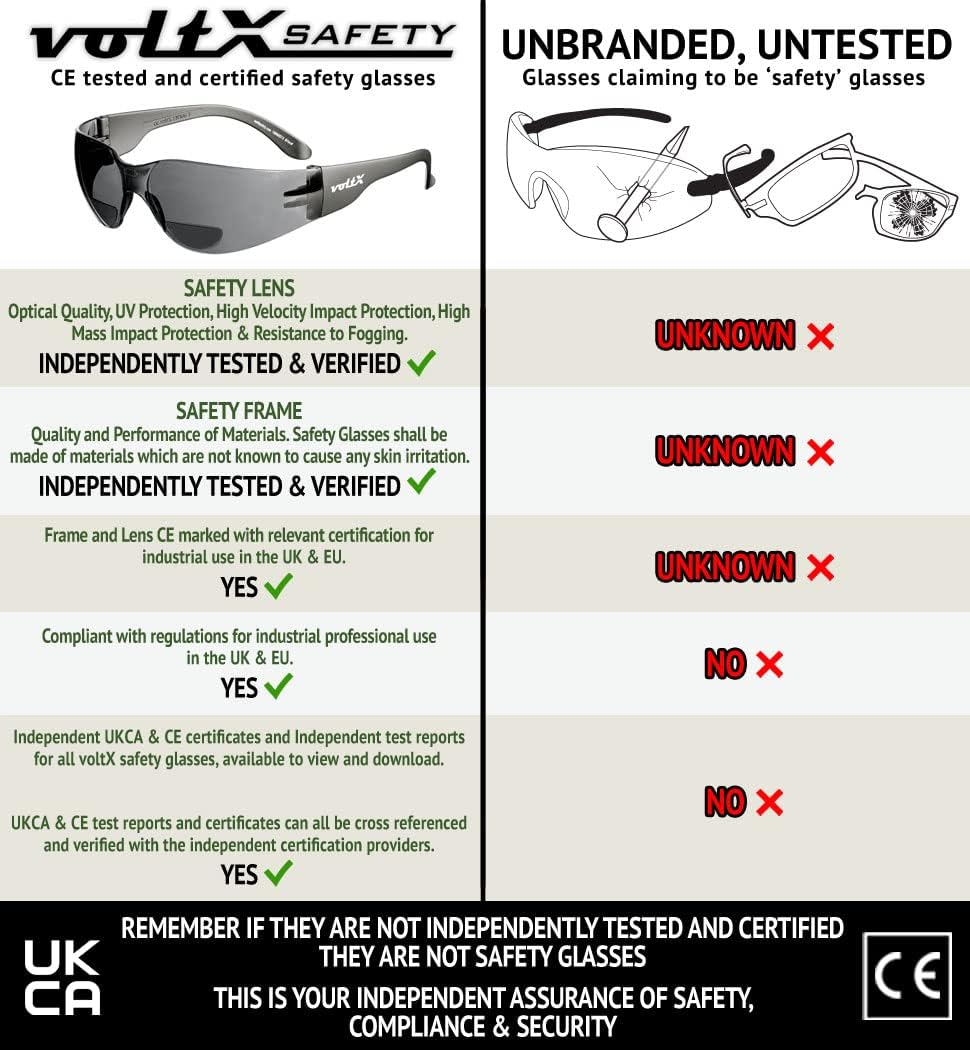 3 x voltX ‘GRAFTER’ BIFOKALE (KLAR +2.5 Dioptrie) Leichtgewichts Industrie Lesen Schutzbrille, EN166