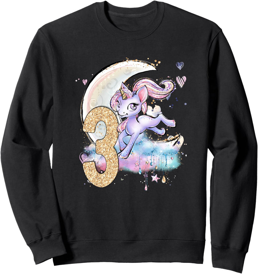3. Geburtstag Einhorn Mädchen Mond Himmlische Kinder Sweatshirt