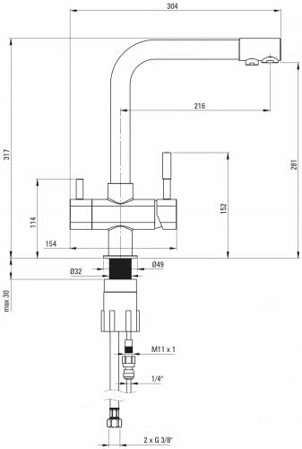 3-Wege-Armatur GM L-Auslauf Onyx für kaltes, heisses und gefiltertes Wasser. Eine Elegante und still