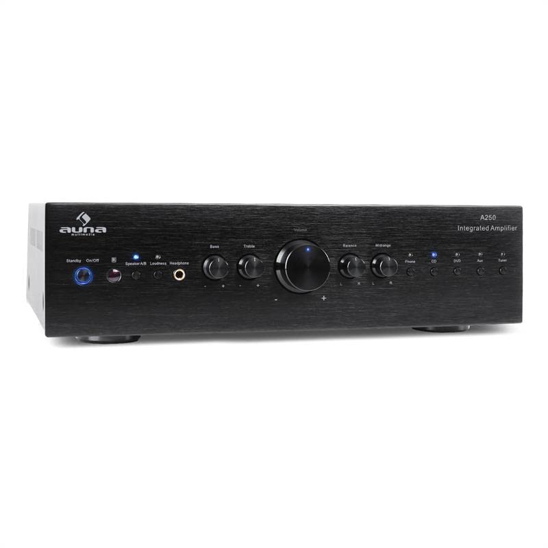 Auna Verstärker, HiFi Stereo Mini Verstärker, HiFi-Verstärker mit Bass & Treble Regler, 2 Kanal Audi
