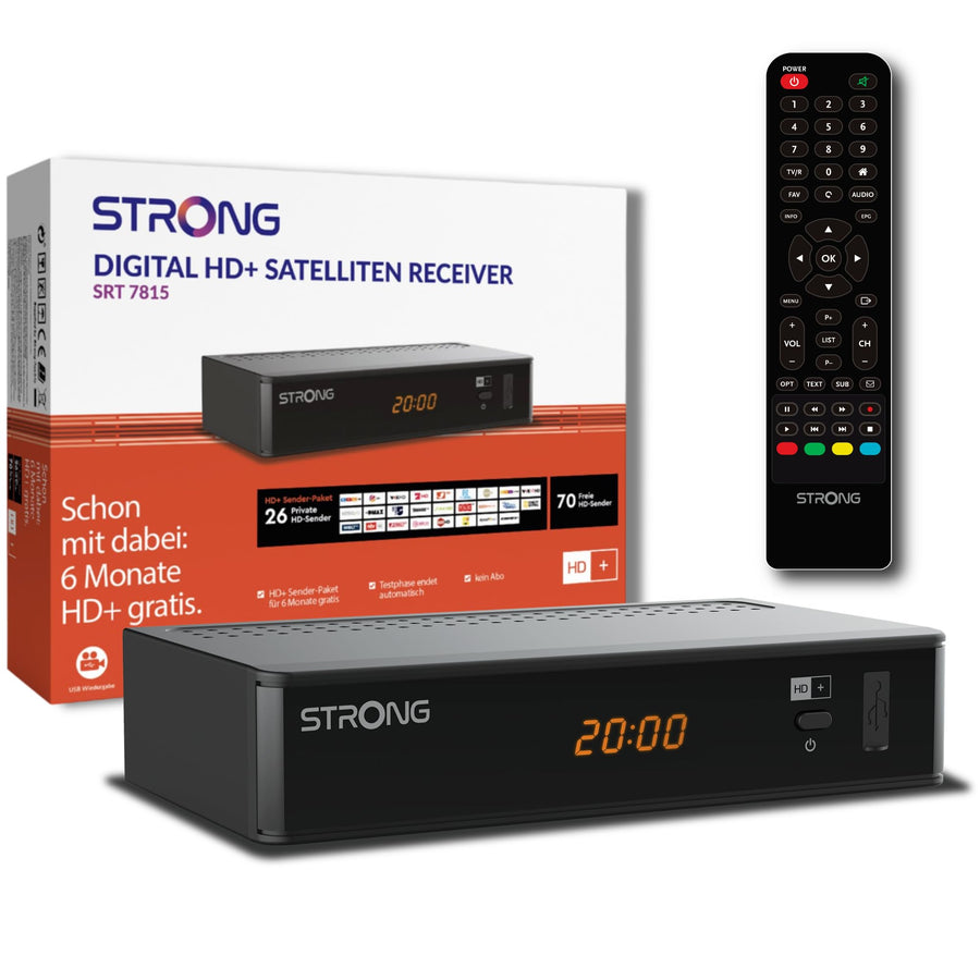 STRONG SRT7815 Digitaler HD Satelliten-Receiver, HD-SAT-Empfang, DVB-T2 HD, inklusive HD+ Karte für