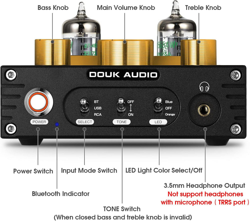 Douk Audio P1 Bluetooth 5.0 HiFi-Verstärker GE5654 Röhrenvorverstärker Valve Tube Preamp Ventil Kopf