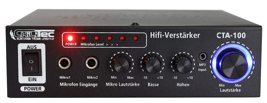 HiFi-Verstärker CTA-100 Cinch Aux In 100 Watt I Stereo 2-Kanal I Mini Endstufe I PC Büro Gaming Schw