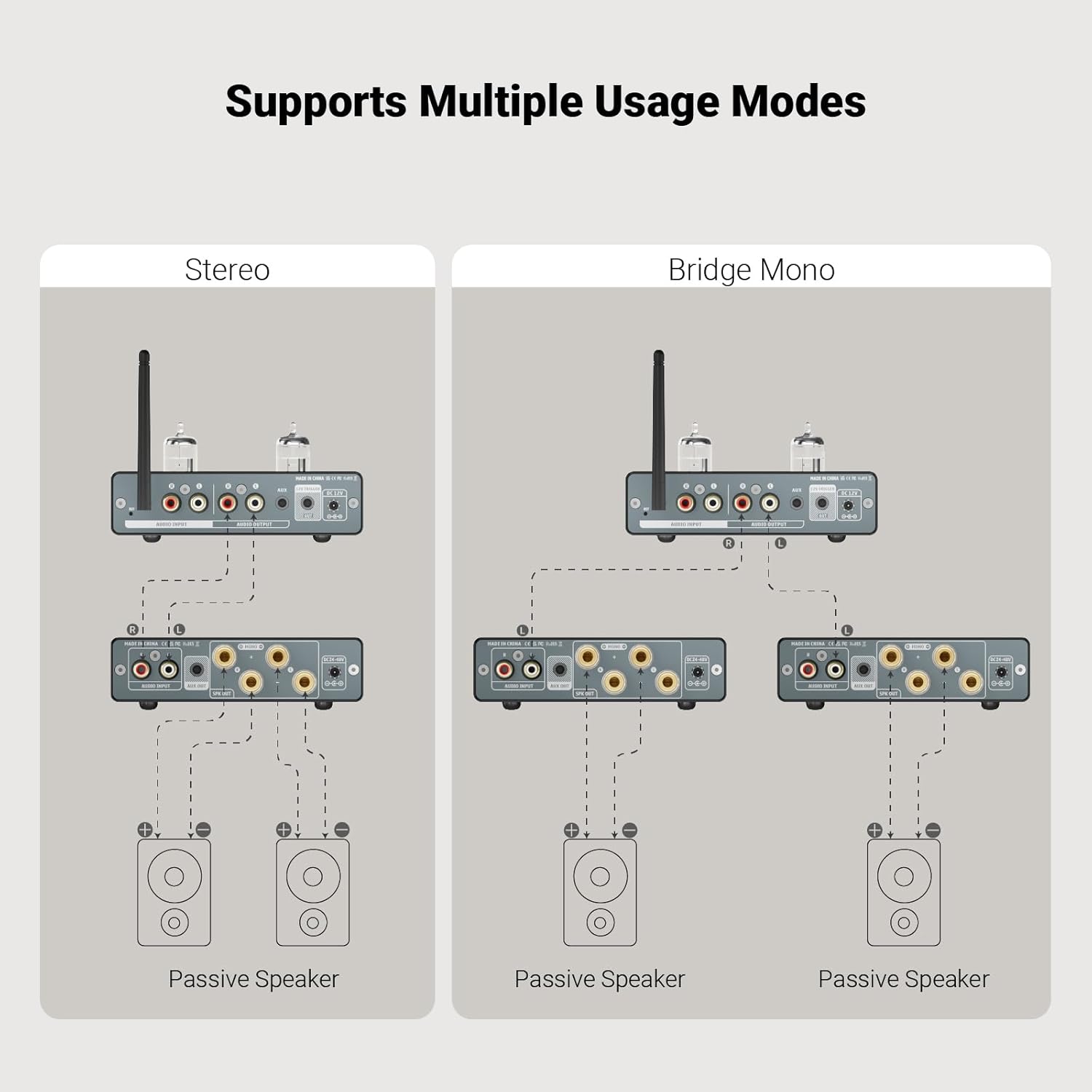- Innovatives gebrücktes Mono-Design: AIYIMA A07 MAX ist ein brückbarer Mono-/Stereo-Desktop-Verstärker, der einfach durch einfaches Umlegen des Funktionsschalters an der Unterseite des Geräts eingerichtet werden kann. Lässt sich problemlos mit 2–8
