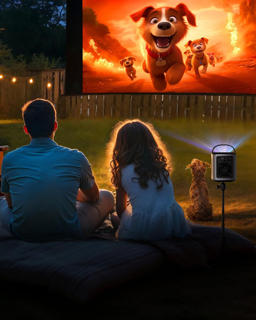 Mini Projektor 4K Mini Beamer WiFi 6 und Bluetooth 5.4, Tragbarer Video Projektor, 130 Zoll Home Cin