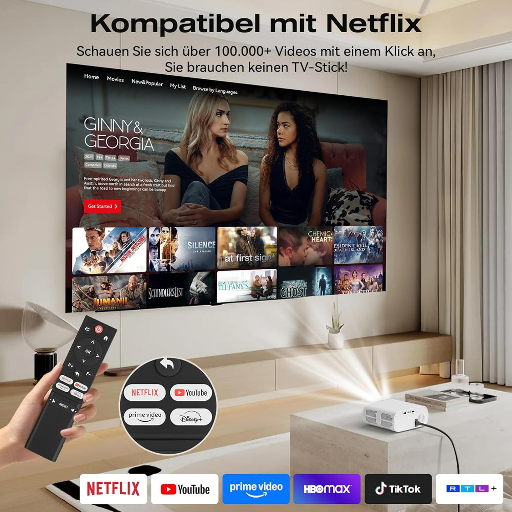 4K Smart Beamer mit integrierter Netflix-App, Kinoähnlichem Sound & HDR | KOGATA Auto-Fokus, 6D Keys