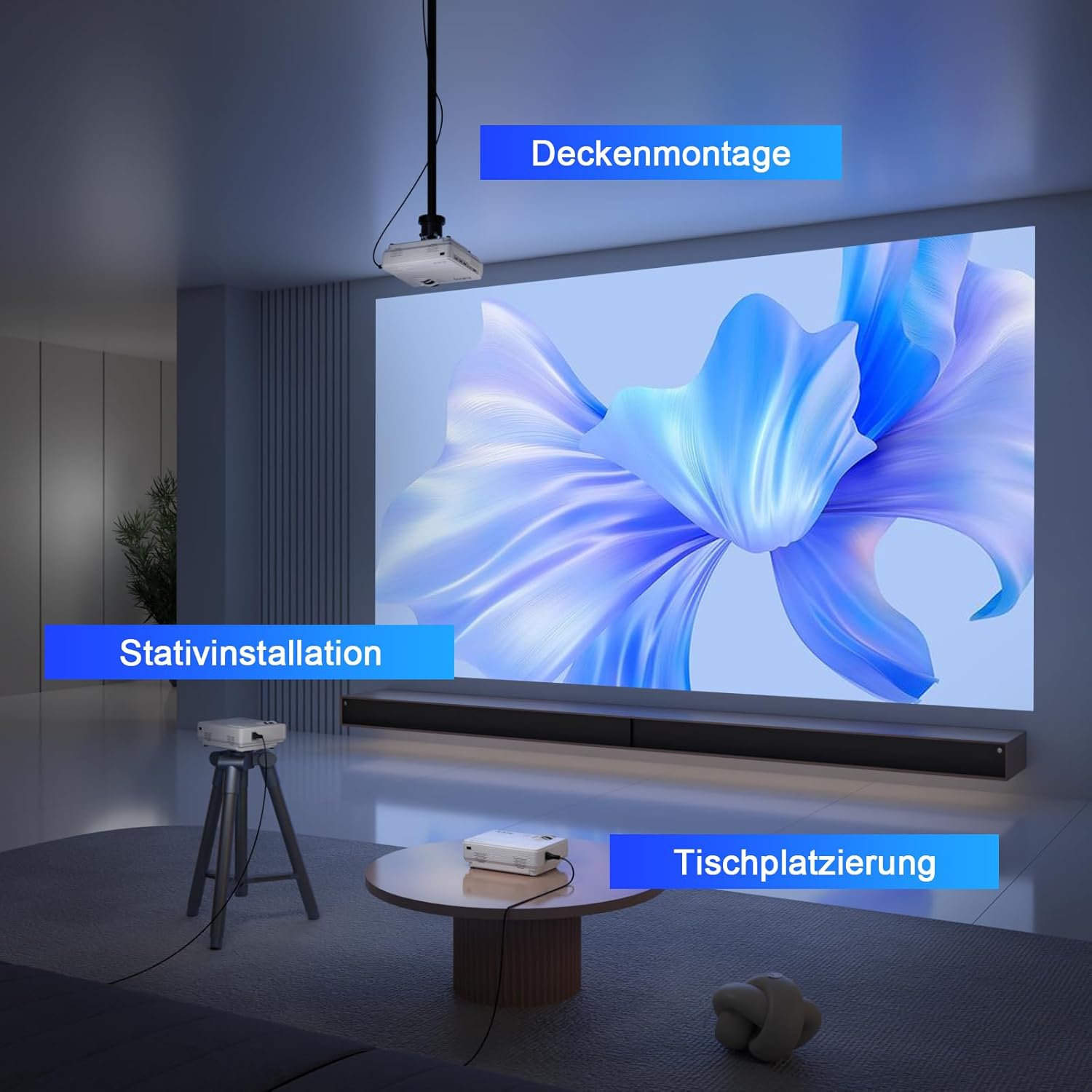 - 【Advanced Bluetooth 5.1 Connectivity & Dual HIFI Stereo Lautsprecher】 Der projector profitiert von dem neuesten Bluetooth 5.1-Chip, der stabile Verbindungen mit einer Vielzahl von Geräten gewährleistet und unterschiedliche Audioanforderungen für