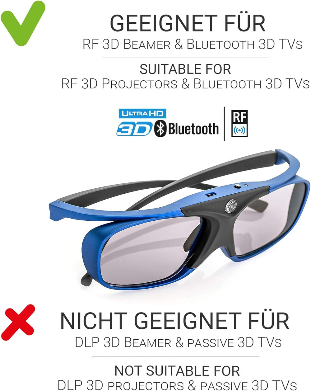 - ❌ KEINE UNTERSTÜTZUNG FÜR: passive 3D TVs, DLP 3D Projektoren, Infrarot 3D Geräte!