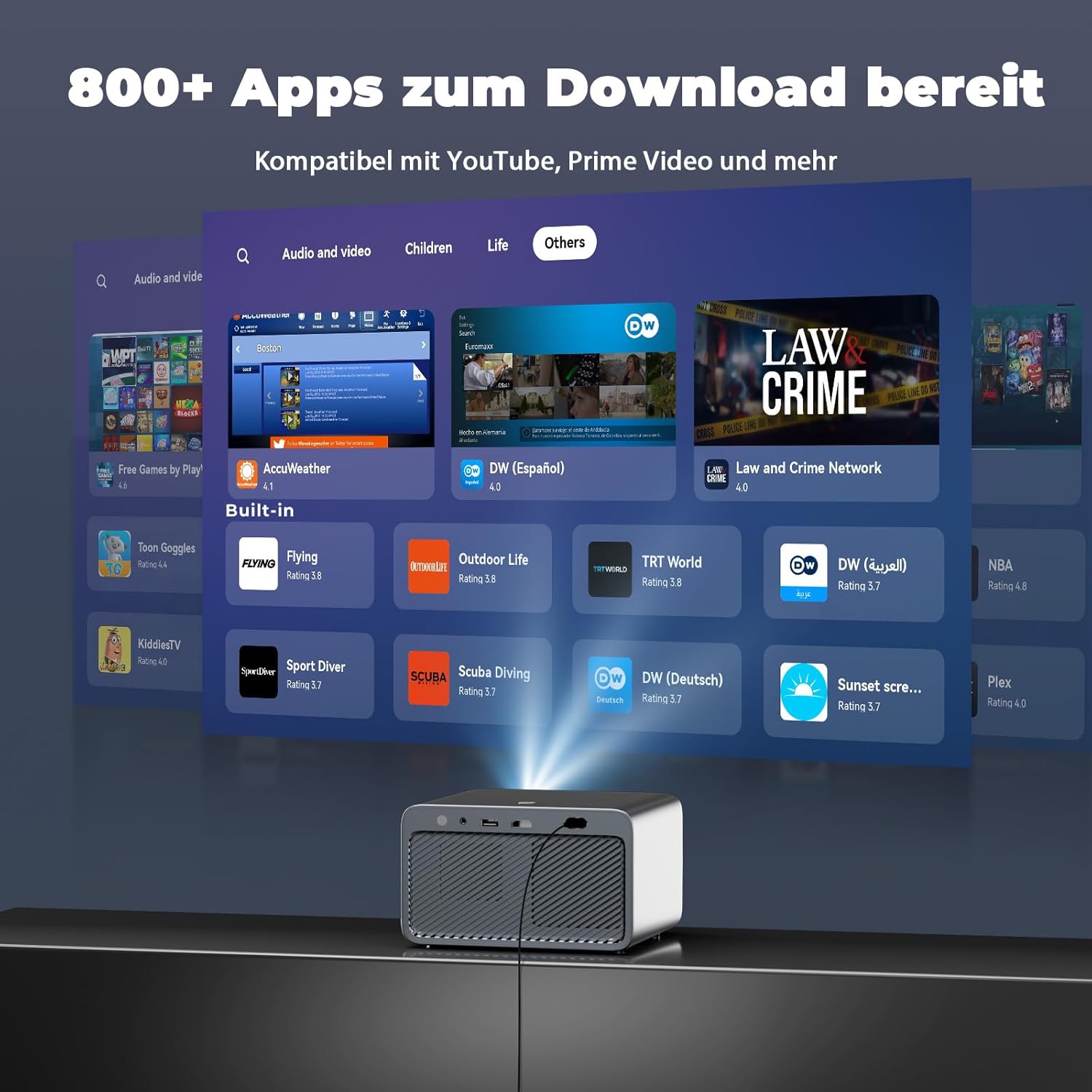 - 【Endloses Streaming | 800+ Apps | 1.000+ Live-TV-Kanäle】 Der L03Pro beamer ist Compatible with Netflix-, YouTube-, Prime Video-, Disney+ & Apple TV-kompatibel – sofortiger Zugriff auf weltweite Inhalte. Im offenen App-Store warten 800+ Apps &