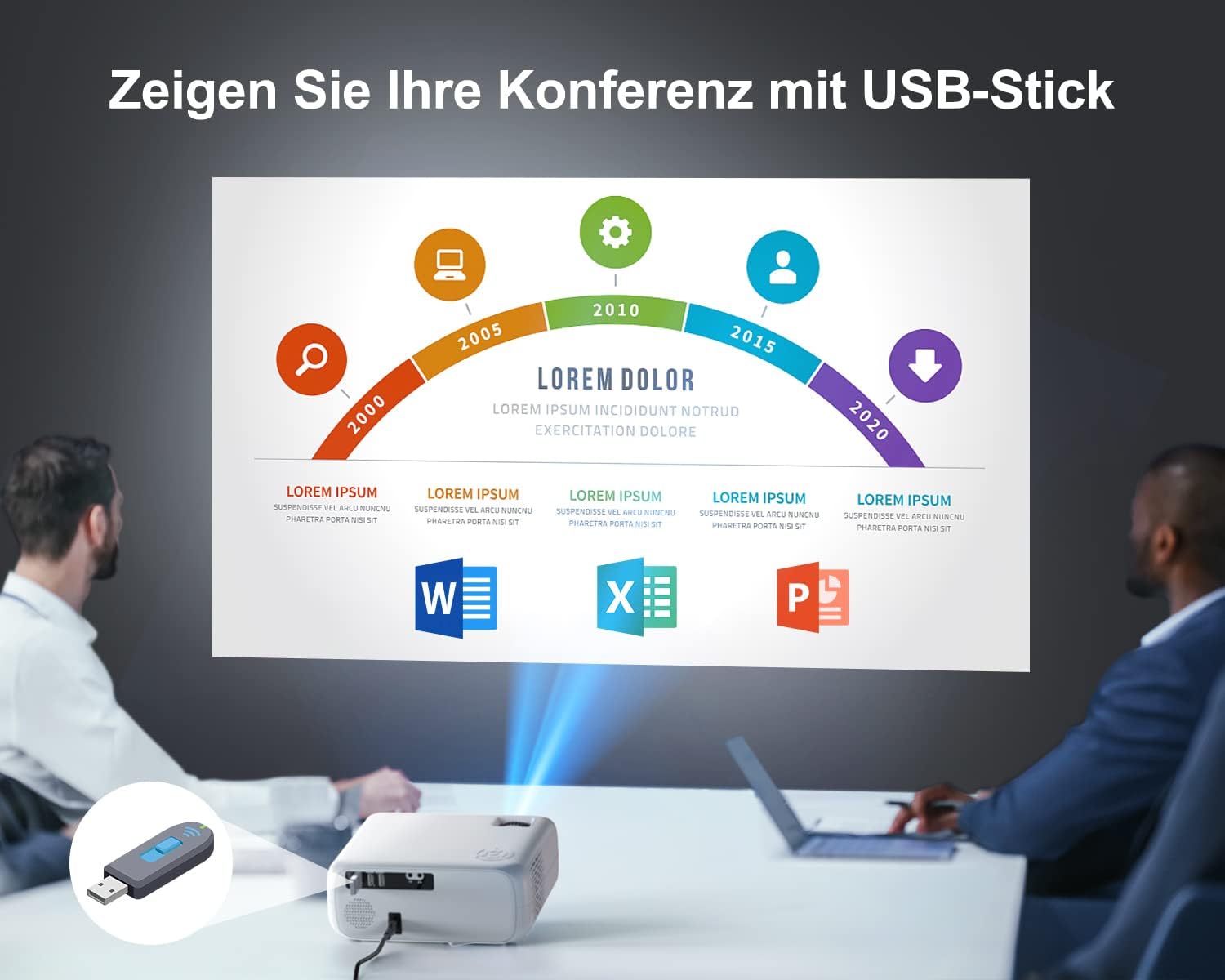 - 🛒【Präsentation via USB & Multimedia-Verbindung】Der Beamer verfügt über HDMI/USB/AV/3,5mm Audio-Anschluss, Kompatibel mit Phone/TV Stick/Chromecast/PS5/Xbox. Fotos bequem zu teilen,Spiele zu spielen usw, um Videos abzuspielen, Online-Kurse für Kinder und Videoanrufe auf dem grossen Bildschirm, auch PPT-Präsentation direkt vom USB Stick abspielen, während andere Beamer zum Abspielen den Laptop anschliessen müssen. WiMiUS W6 erfüllen Sie Ihre Anforderungen an HUnterhaltung, Gaming, Lernen und Büro.