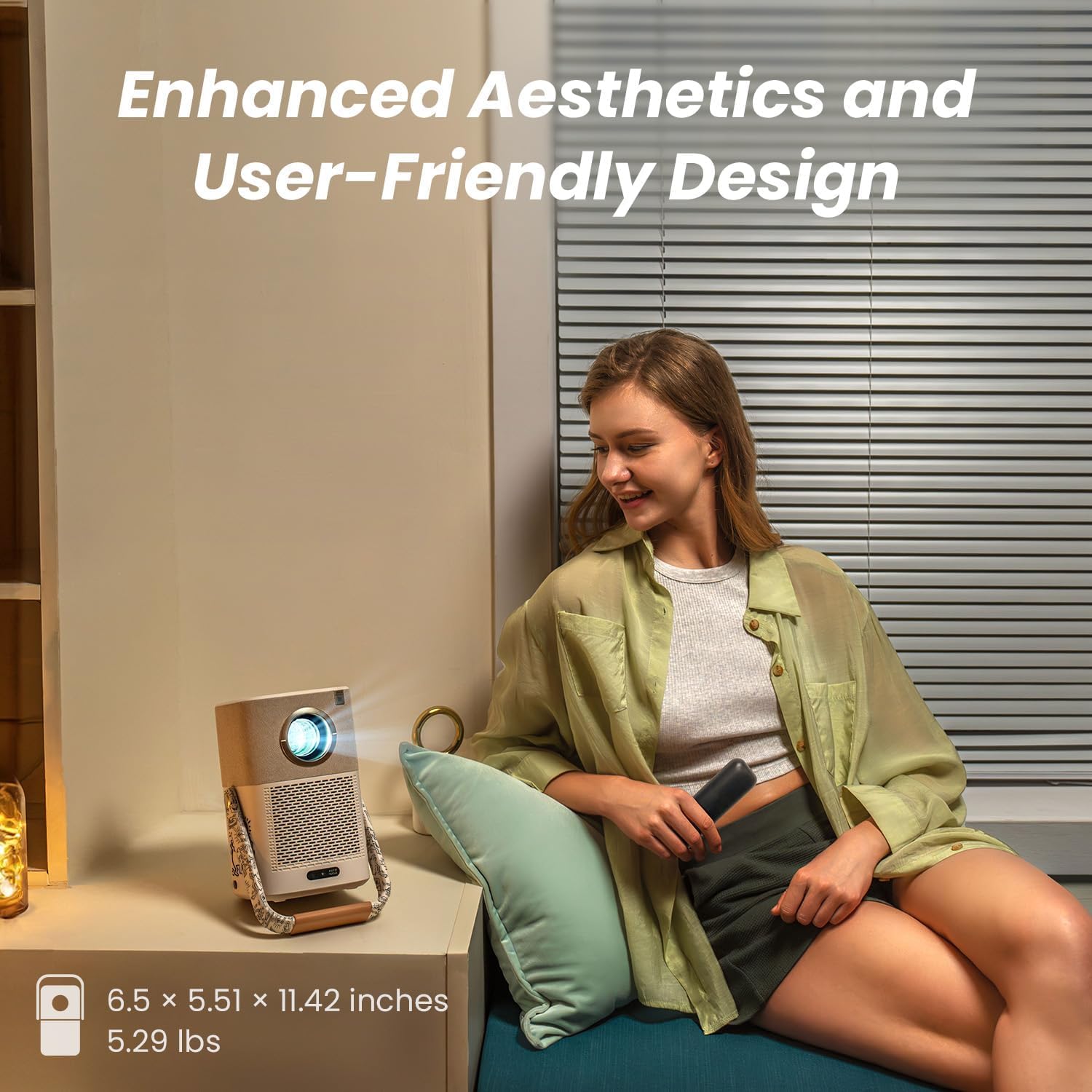 - 【Automatische AI-Anpassung und Platzersparnis】Der Tragbarer Smart Beamer verwendet einen KI-Neuralnetzwerkalgorithmus und eine Rollgyroskop-Technologie, um Hindernisse zu vermeiden, automatischen Fokus, dynamische Trapezkorrektur und Bildanpassung an