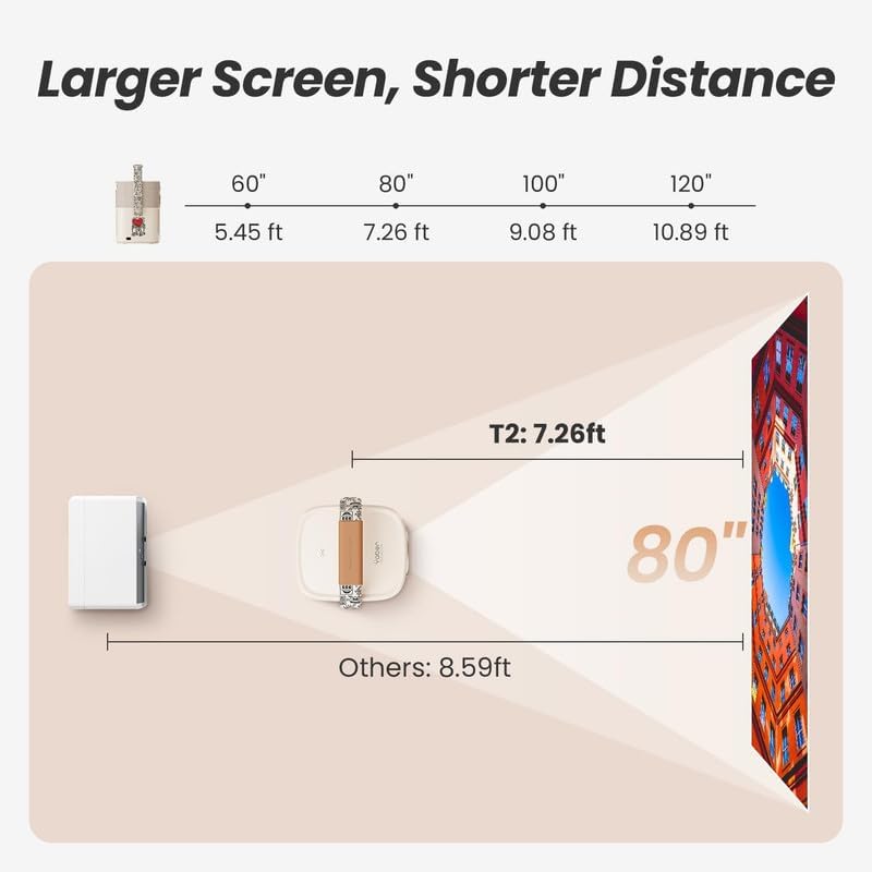 - 【Beamer Outdoor mit Eingebautem Akku】Der T2 portable Projektor ist ein neuer, selbst entwickelter Beamer mit Akku und hoher Kapazität, der bis zu 2,5 Stunden Videowiedergabe oder 18 Stunden Audio ermöglicht.Der portable Projector verfügt ausserdem