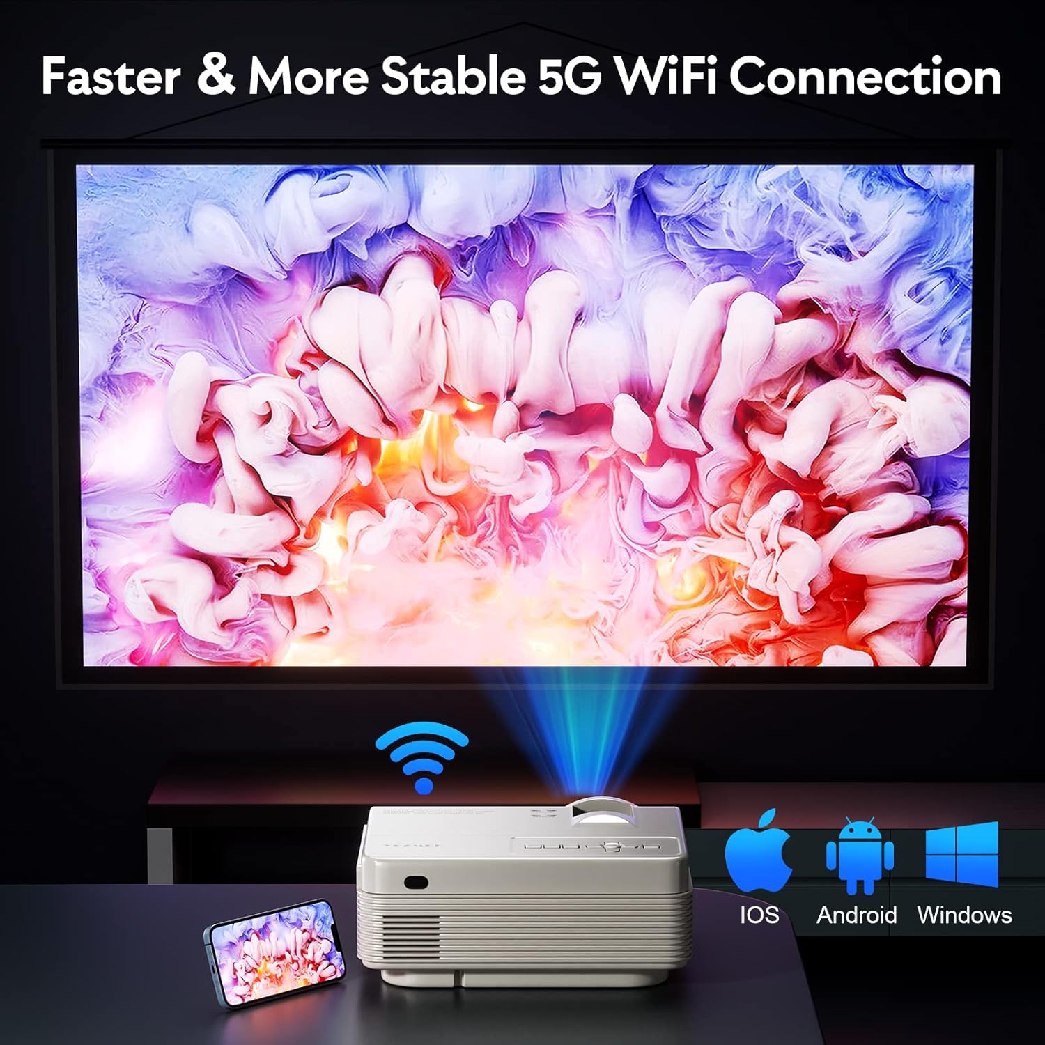 - Schnellere 5G WiFi & Bluetooth Verbindung: Ausgestattet mit dem neuesten 2,4G/5G WiFi und Bluetooth Chip, bietet der Beamer nicht nur eine schnellere WiFi Verbindung mit den meisten iOS-, Android- und Windows-Geräten, sondern auch einen stabileren