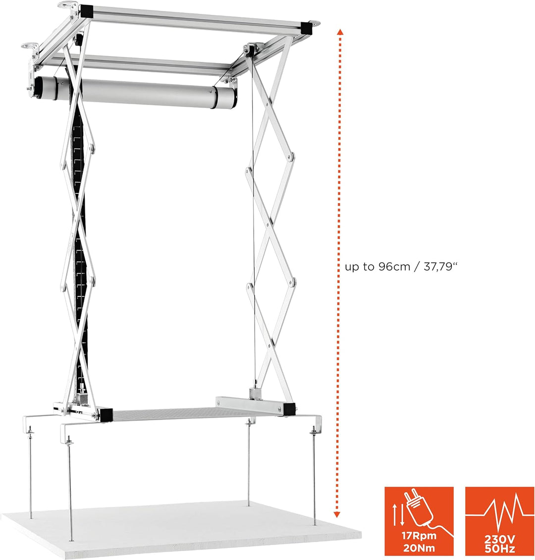 - Transportiert Projektoren bis 25 kg bis zu der Grösse: 57cm x 60cm (BxT)