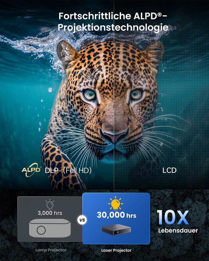- 【Helle 1200 ISO Lumen】Dieser Mini-Beamer verfügt über die ALPD-Technologie, mit der Sie unverfälschte 1080p-HD-Bilder ohne Flecken oder Farbstiche geniessen können.