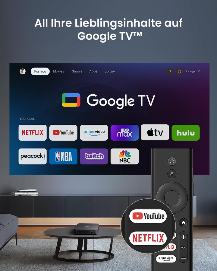 - 【GTV mit lizenziertem Netflix】Geniessen Sie das reibungsloseste Netflix-Streaming-Erlebnis aller Zeiten auf einem Smart beamer. Greifen Sie auf über 10.000 Apps wie YouTube, Prime Video, Hulu.