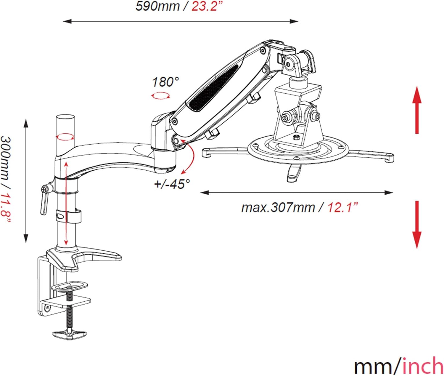 - Reichweite: 59cm – Belastbarkeit: bis zu 8 kg – integrierte Kabelführung