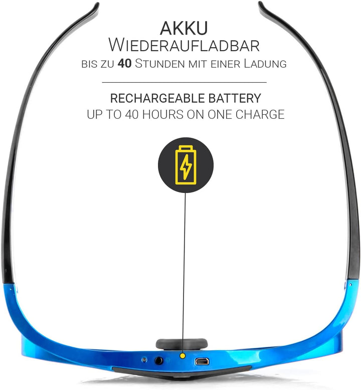- 🔋 Der Hochleistungsakku mit Schnellladefunktion garantiert ungetrübten 3D-Genuss über Stunden hinweg. Eine einzige Ladung von 2 Stunden reicht für 40 Stunden im Dauerbetrieb. Intelligente Schaltkreise schalten die Brille nach 5 Minuten aus, wenn