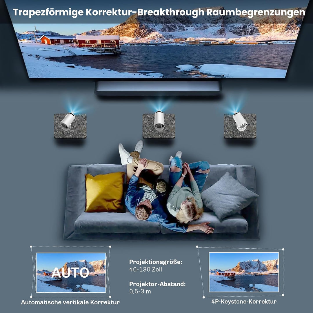 - 【Utomatischen Trapezkorrektur】: Mit dem manuelle Fokus des und der automatischen Trapezkorrektur kann der Projektor in 3 Sekunden superschnell und sorgenfrei eingerichtet werden, bevor Sie sich auf Ihre Lieblingsfilme einstimmen. Der gesamte