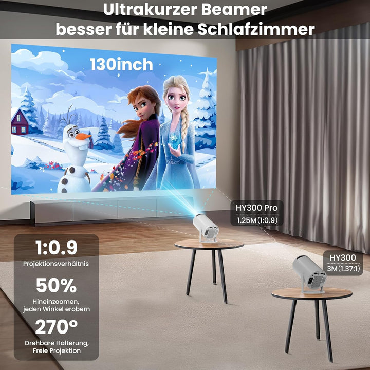 - 【Native Auflösung 720P】: HIPPUS Mini Beamer, native Auflösung 1280*720P, unterstützt Full HD 1080p Videoeingang und das Bild ist klar. 1:0.9 Projektionsverhältnis und 350 ANSI-Lumen stellen die Farbe des Films wirklich wieder her. Mit einer