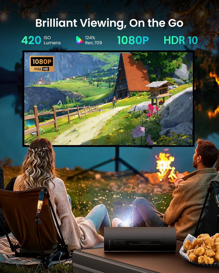 - Ultimative Portabilität: Mit einem eleganten, flaschenartigen Design passt der JMGO Smart Beamer Outdoor in Ihre Hand oder Ihren Rucksack, bereit für jede Umgebung. Der 10000 mAh Akku bietet bis zu 4,5 Stunden Filmzeit oder 7 Stunden Musik. Der Type-C