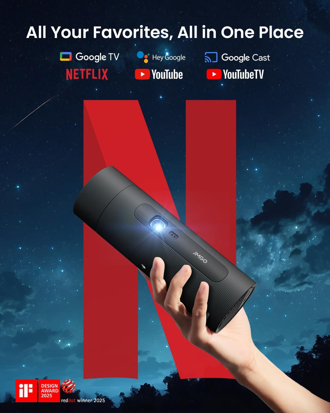 - Endlose Unterhaltung: Der JMGO Smart Mini Beamer läuft mit dem neuesten Google TV. Streamen Sie zertifiziertes Netflix mühelos, ohne TV-Stick oder Downloads. Geniessen Sie über 10000 Apps und 800+ kostenlose Kanäle. Steuern Sie per Sprachbefehl mit