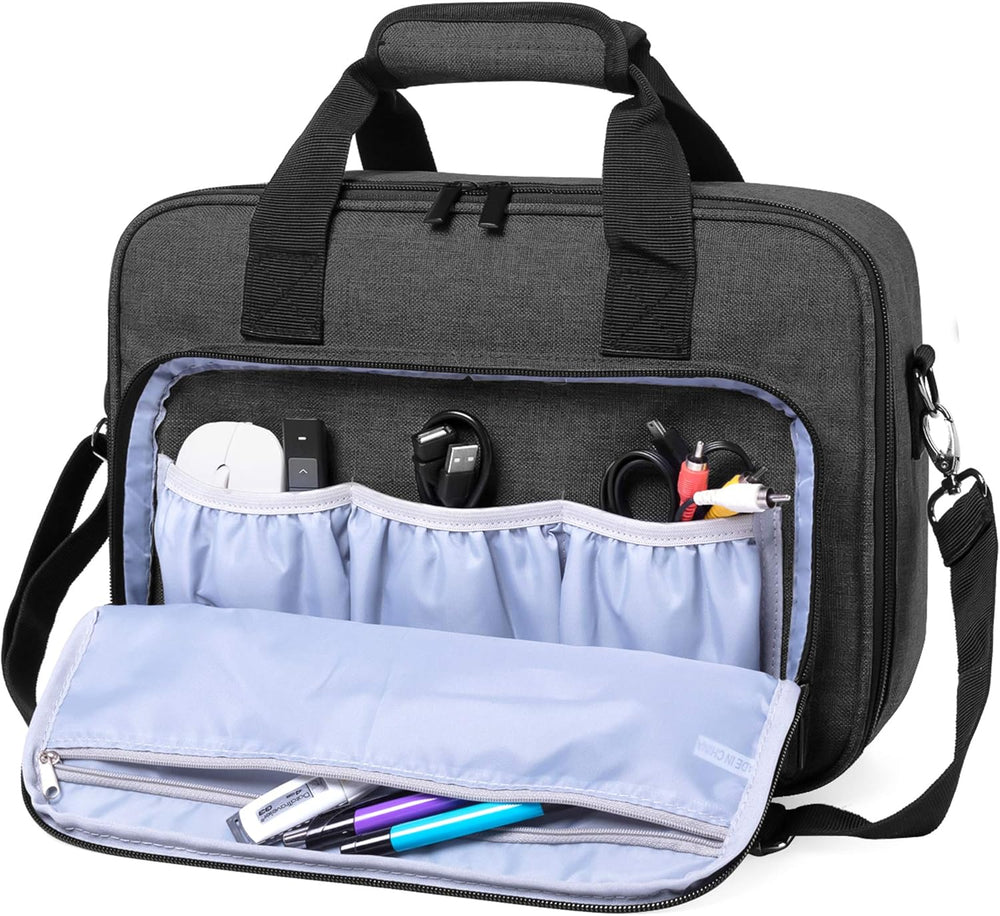 - HAUPTSPEICHERUNG: Das Hauptfach ist mit einem Klebeband befestigt, um den Projektor in gutem Zustand zu halten. Kommt auch mit einem abnehmbaren gepolsterten Teiler, von dem das Layout nach Ihren Wünschen. Es gibt auch eine grosse gepolsterte Innentasche (39,4 cm x 28,6 cm) für einen 15,6-Zoll-Laptop.