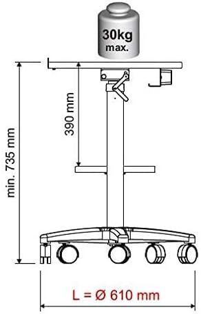 - Die Grösse der Tischplatte 35x50 cm (B x T) ist ideal für Beamer, Projektoren und Laptops. Der Beistelltisch ist um bis zu 10 Grad neigbar, eine Anschlagkante hält die Medien am Platz. Mit bis zu 30 kg Tragkraft sind auch robuste Overhead-, Dia