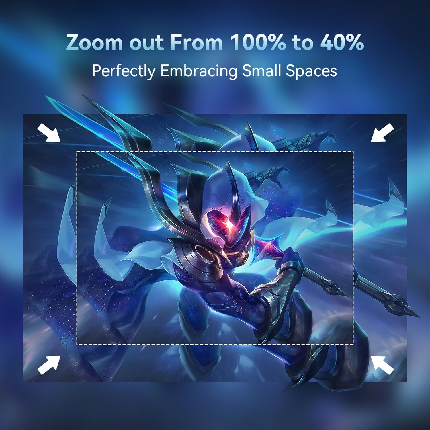 - 【Drehbarer Smart Beamer】 Der Projektorfuss ist mit einer drehbaren Halterung ausgestattet, die es ermöglicht, den beamer in verschiedene Richtungen auszurichten, z. B. von der Wand bis zur Decke. Sie können aus jedem Winkel zwischen 12 und 36 m