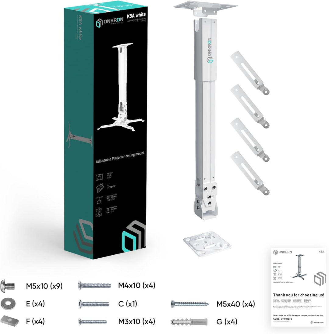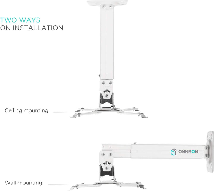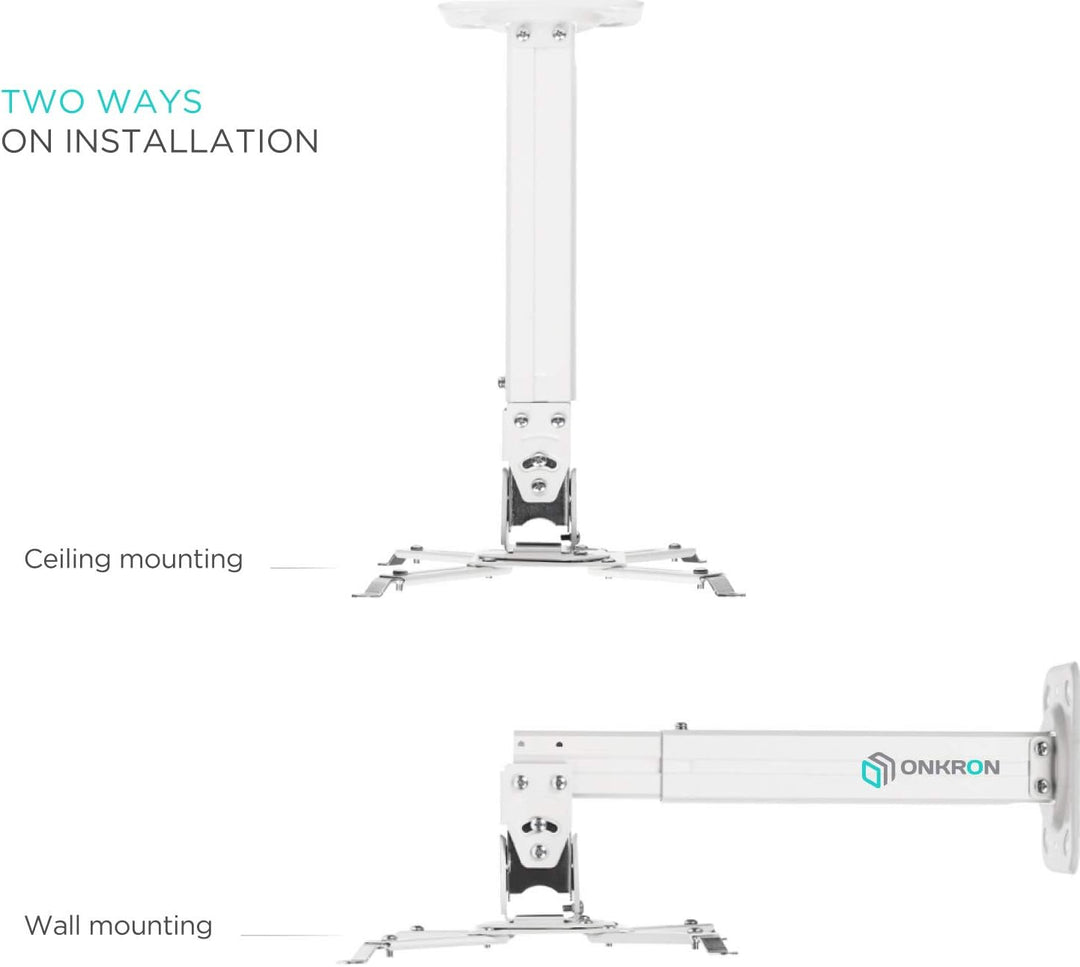 - Die ONKRON K5A Decken- und Wandhalterung ist für die meisten modernen Projektoren bis zu 10 kg geeignet. Das praktische Montagesystem hilft Ihnen, die Halterung schnell und einfach an der Wand oder an der Decke zu befestigen, wodurch Sie Zeit und Mühe
