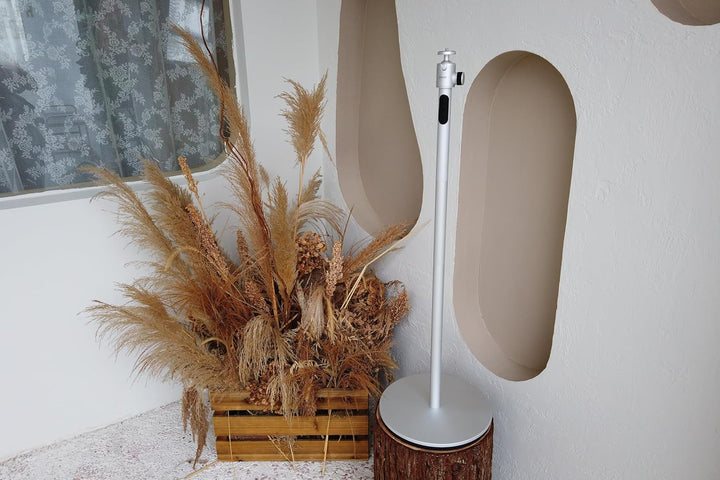 - Das Design aus silberner Aluminiumlegierung lässt sich problemlos in verschiedene Wohnumgebungen integrieren. Das gesamte Design im silbernen Stil verwendet ein cleveres Design vom Ständer, Sockel bis zum Wolkentisch und kann problemlos in die