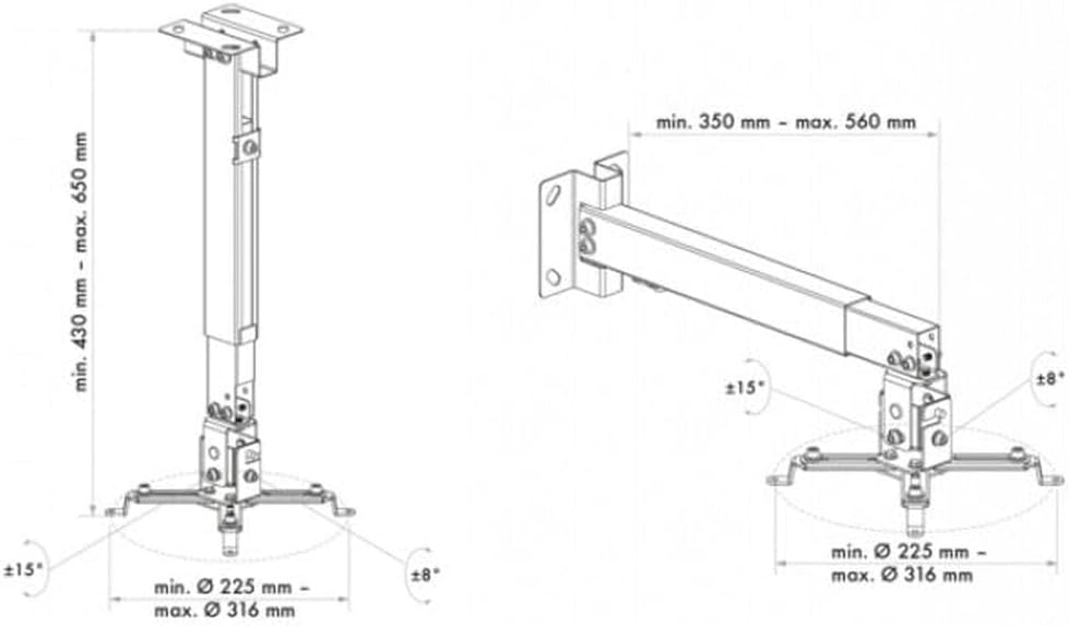 - Neigungswinkel: -15 – 15°. Breite: 270 mm.