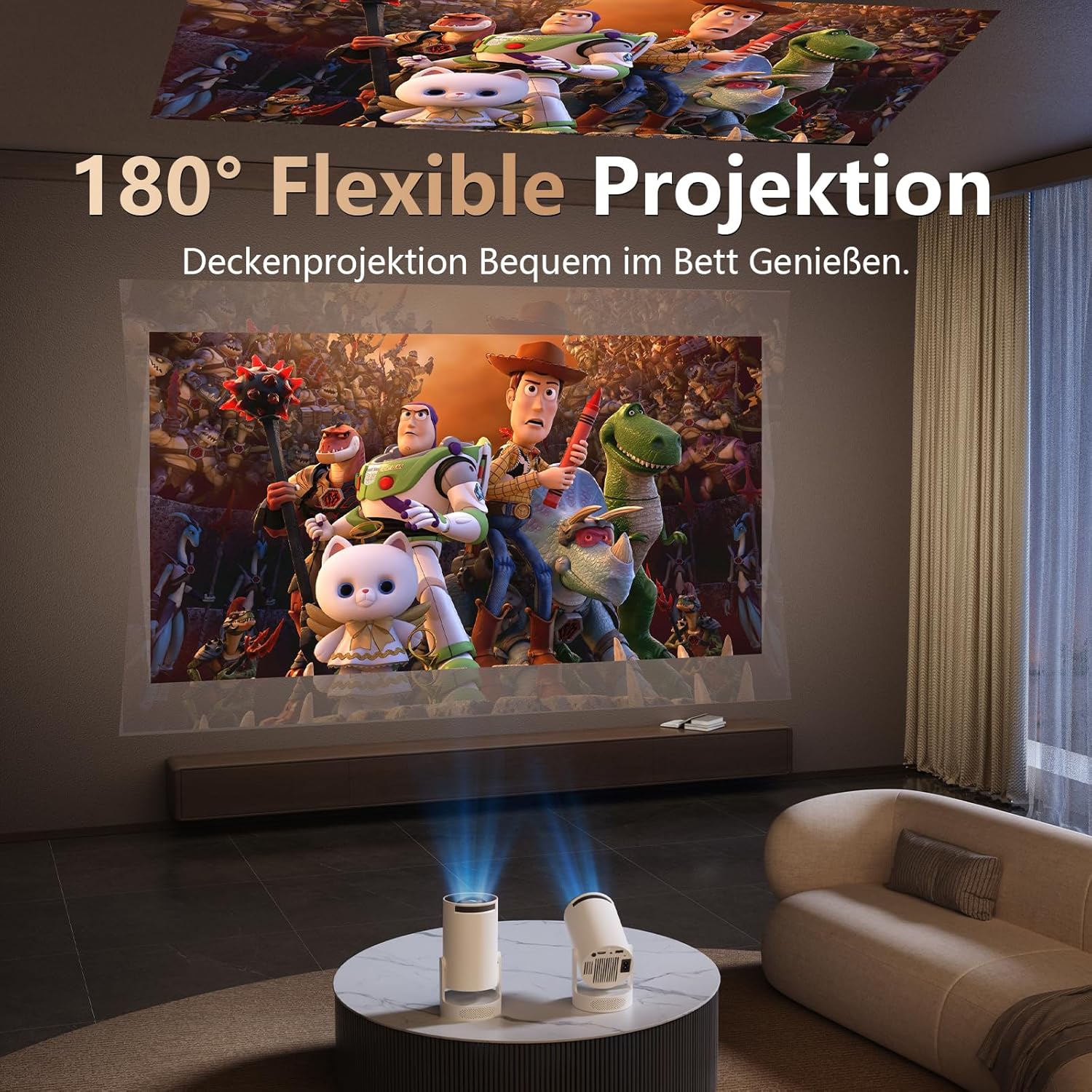 - 📺 Eingebaute Apps & Android 11.0 Smart System: Mit integriertem WiFi und dem Android TV 11.0 Betriebssystem, das mit beliebten Streaming-Apps vorinstalliert ist, verwandelt dieser smarte Projektor jeden Raum sofort in Ihr persönliches Heimkino.