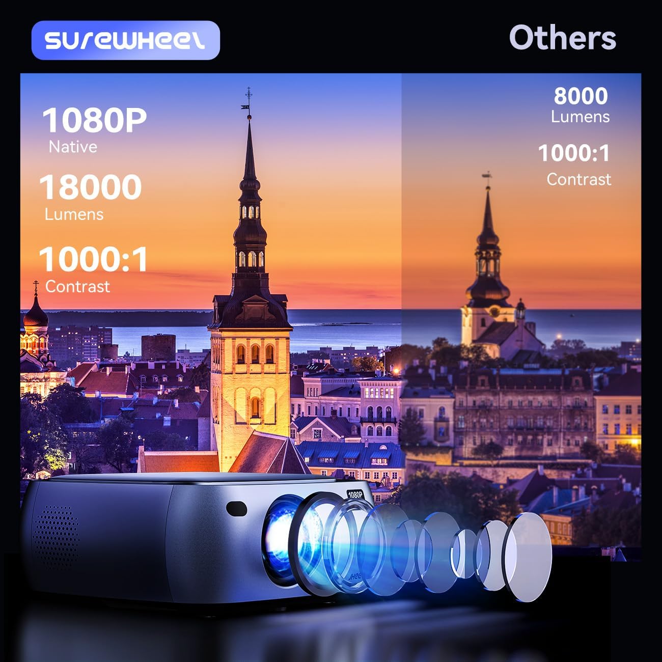 - đ€©đă12000 Lumen & Vollbildhelligkeit & Keine Dunklen Bereicheă Der innovative K10 Beamer von SUREWHEEL gibt beim Projizieren kein âHell in der Mitte, Dunkel drumherumâ, er ist sehr freundlich fĂŒr Kunden, die Anforderungen an die