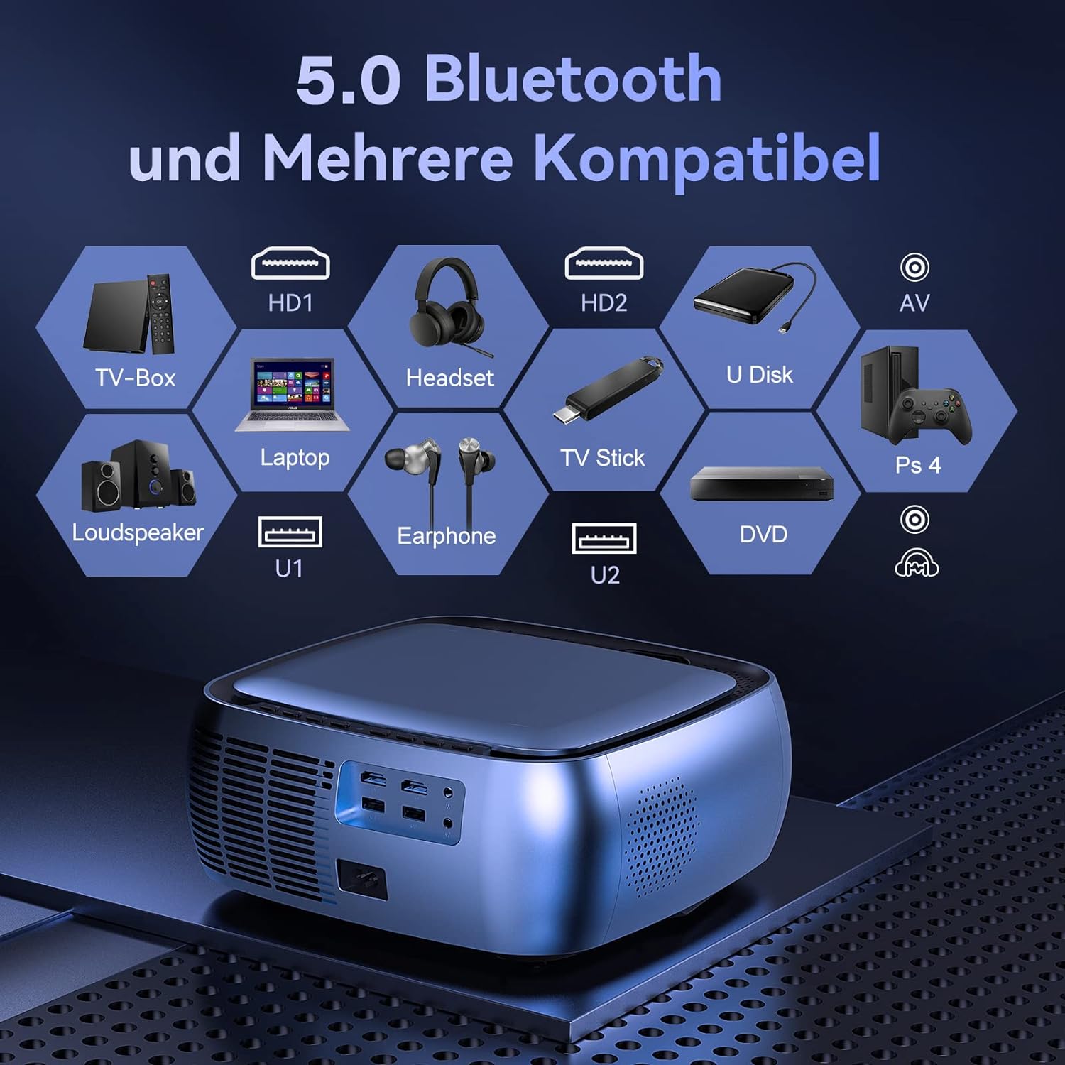 - đ€©đăEchter MultifunktionsprojektorăK10 Projektor verfĂŒgt ĂŒber Trapezkorrektur/Zoom 100%â50%/Gussbildschirm/UnterstĂŒtzt 4K/Blu 5.0/HDMI-Funktionen, egal ob Sie ihn drinnen oder draussen verwenden, Die Installation und Einstellung der