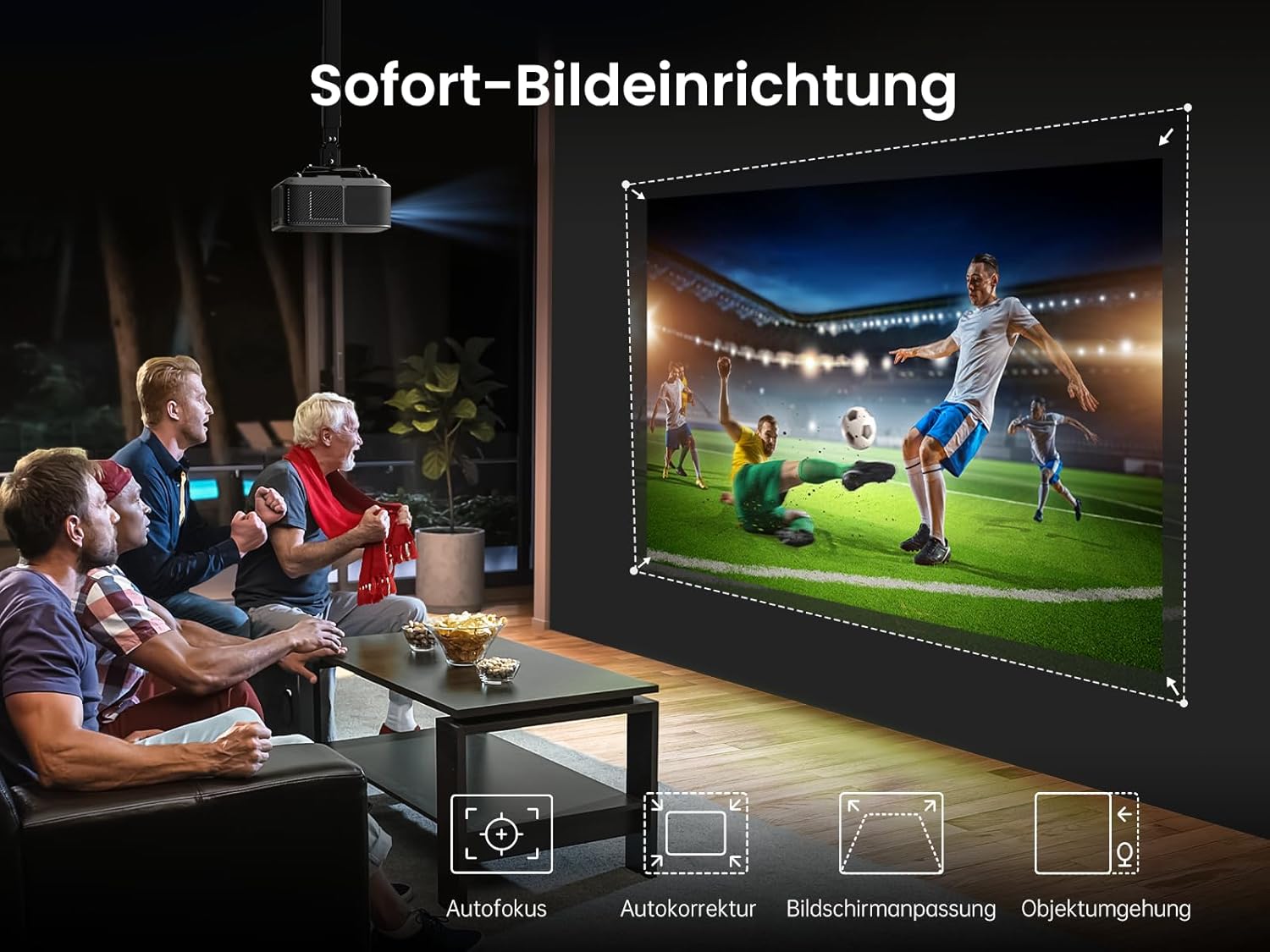 - 【Automatische Soforteinrichtung】Lassen Sie den Tageslicht-Beamer das Bild selbst einstellen! Neben dem verbesserten Autofokus und dem automatischen Keystone-Korrektur-Algorithmus verfügt dieser smarter Heimkino-Beamer über automatische