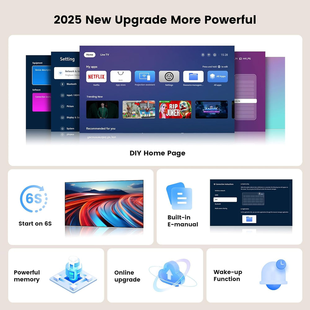 Beamer-4K Passend für Netflix Dolby Audio ONOAYO 1500ANSI HDR10+ HDMI eARC Smart Beamer Heimkino, 10