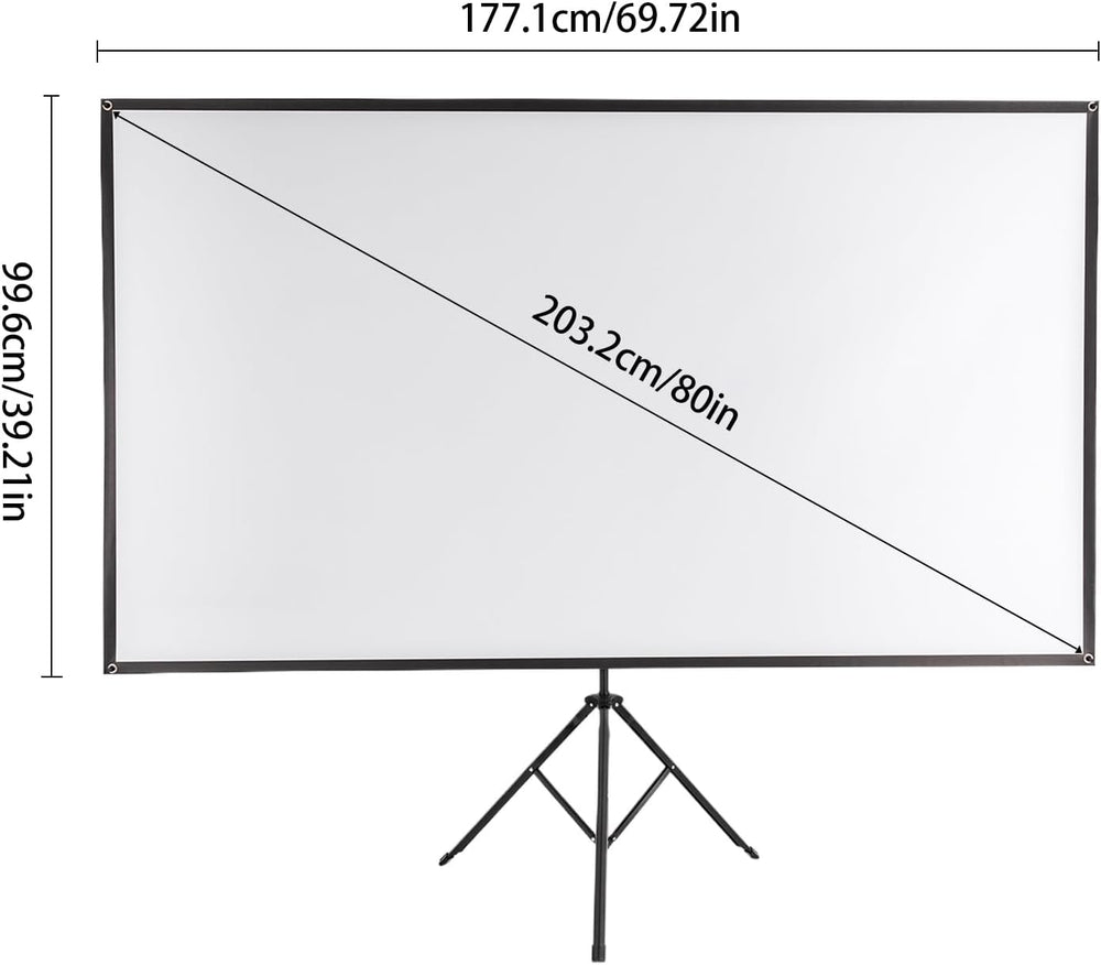 SABUIDDS Beamer Leinwand mit Stativ, 80 Zoll, Tragbar Projektor Leinwand, 16:9, 4K HD Projektion Lei