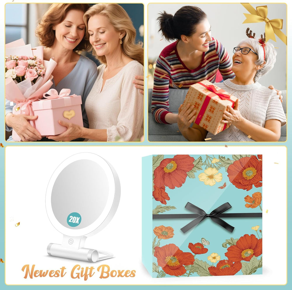 B Beauty Planet Vergrösserungsspiegel mit Licht, 20-fache/1-fach Doppelseitige Tischspiegel,3 Farbli